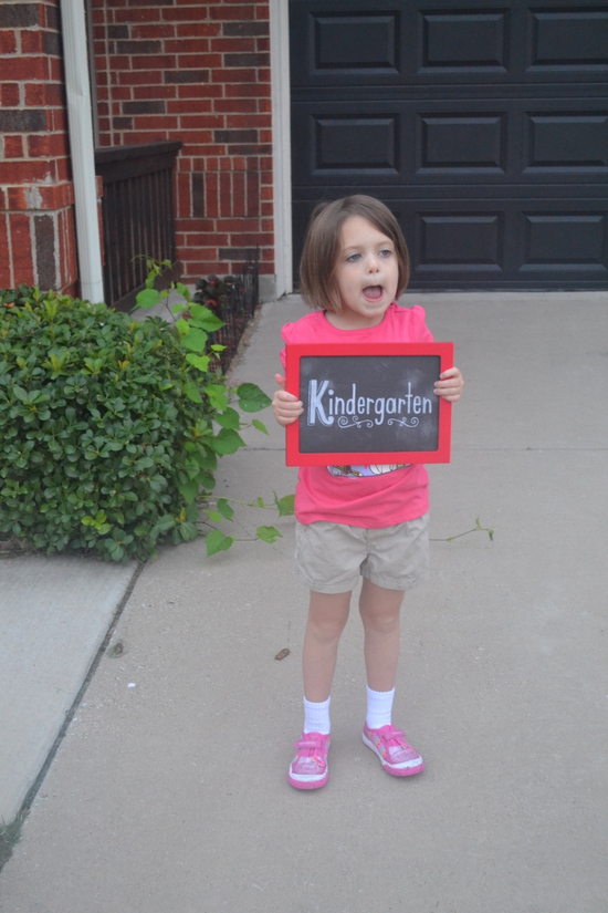 She kind of looks like she's rethinking this whole kindergarten thing. But that's just Kate. I know her like the back of my hand. Excited to be there, but not going to just bound right in.